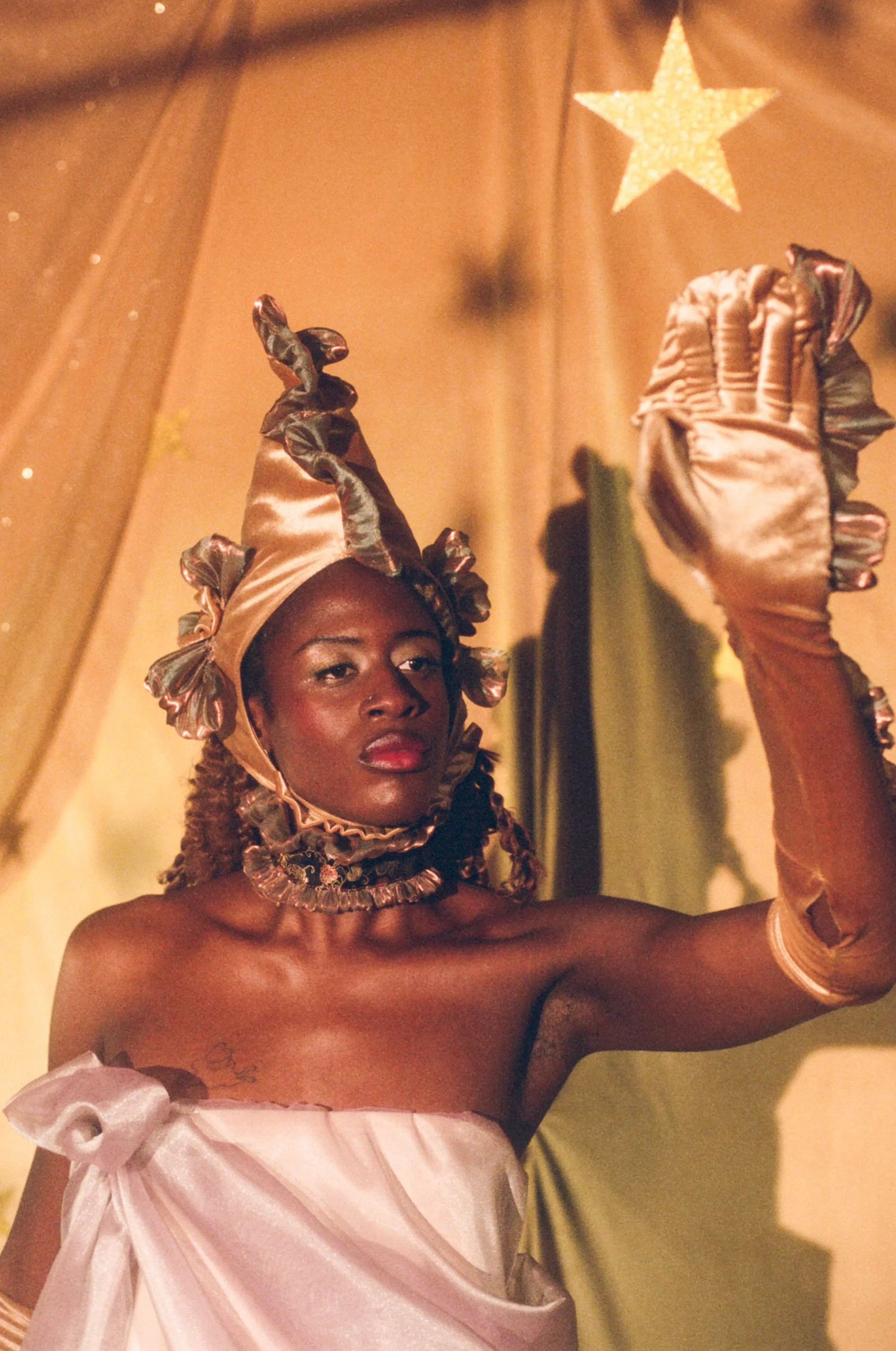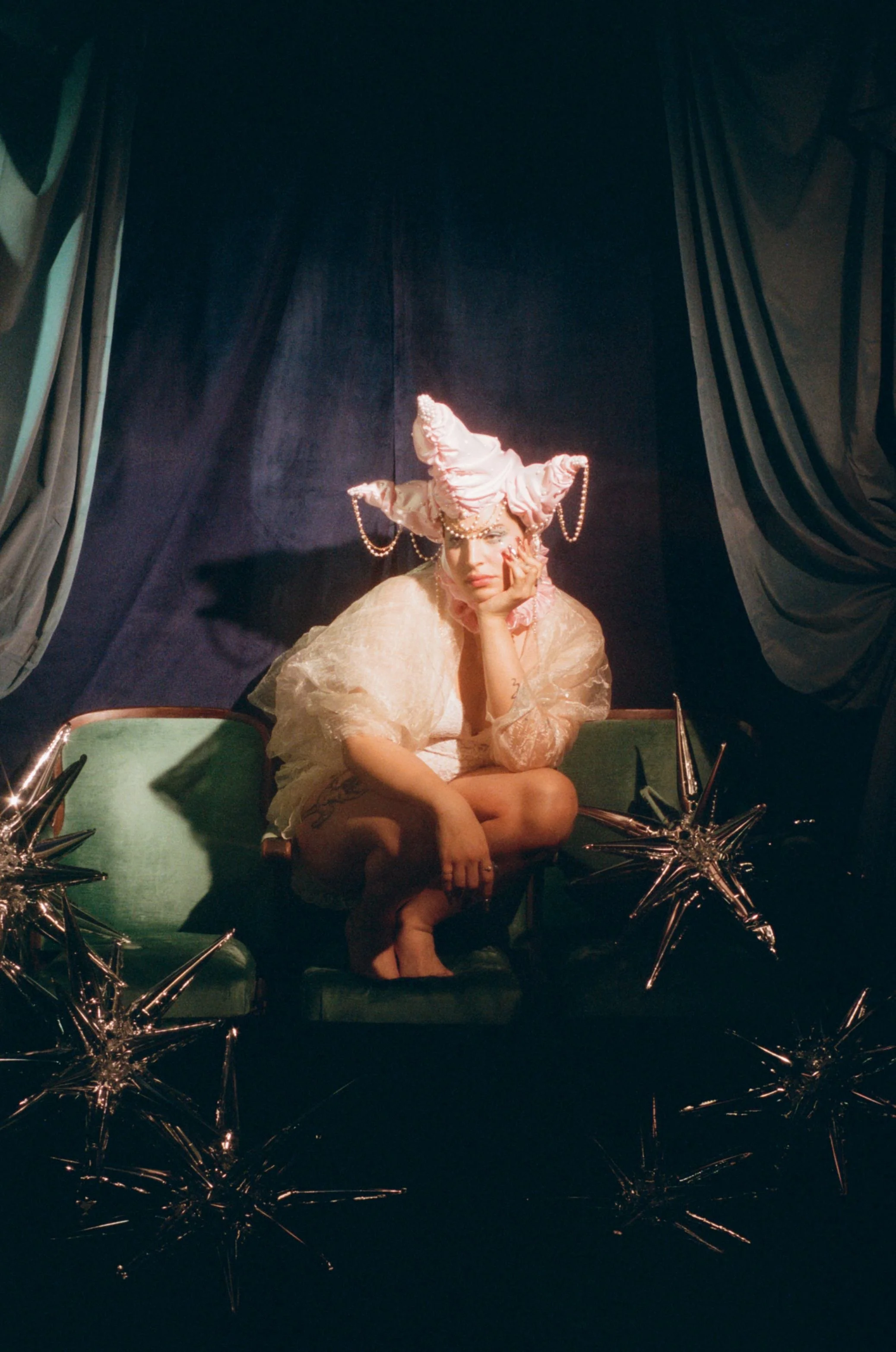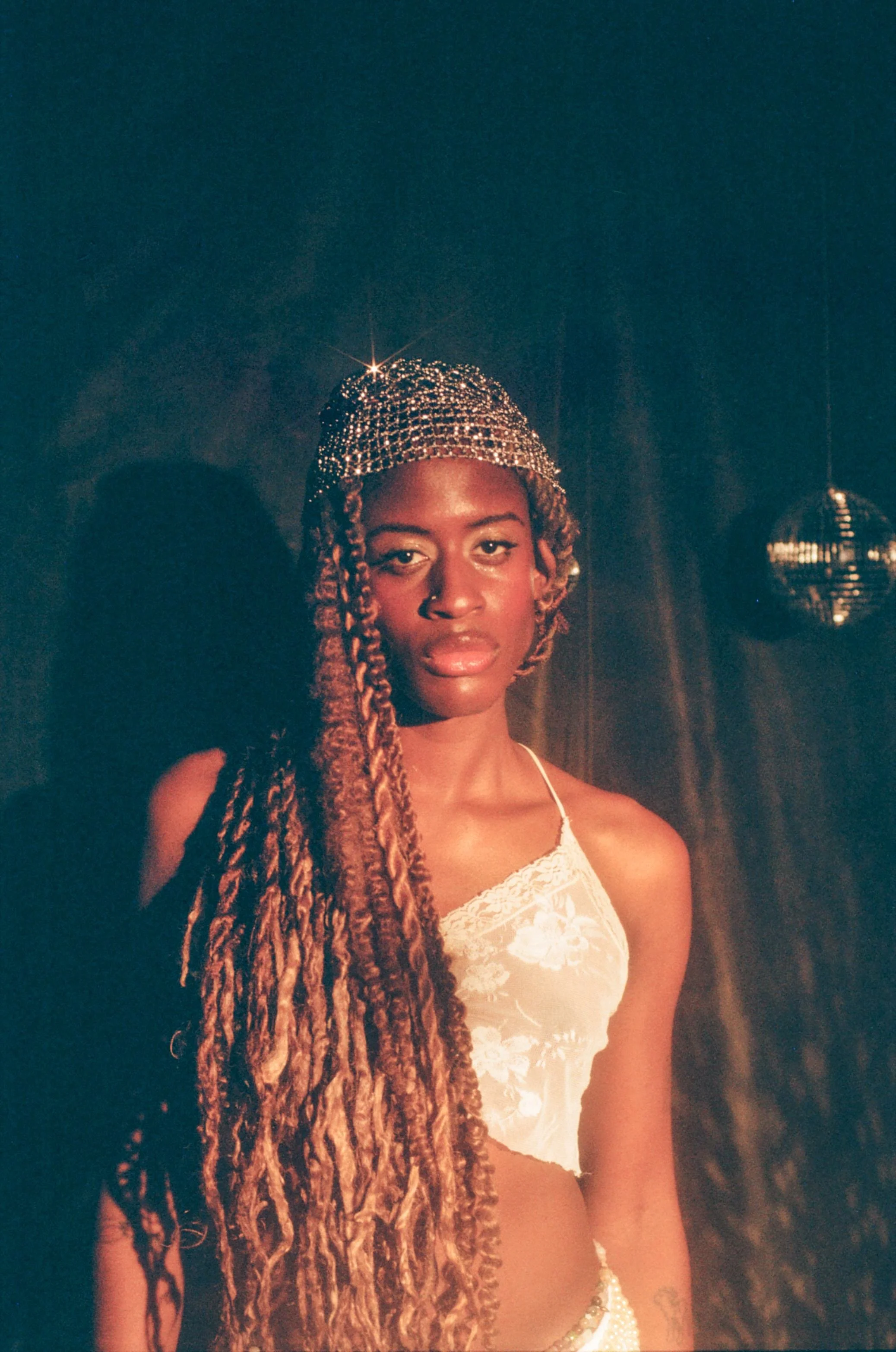 On Oçeané: TOP Talent’s own, BLOOMERS, HEADPIECE and BELT Stylist’s own. On Camilla: BUSTIER Talent’s own, BLOOMERS, HEADPIECE and NECKLACE Stylist’s own.