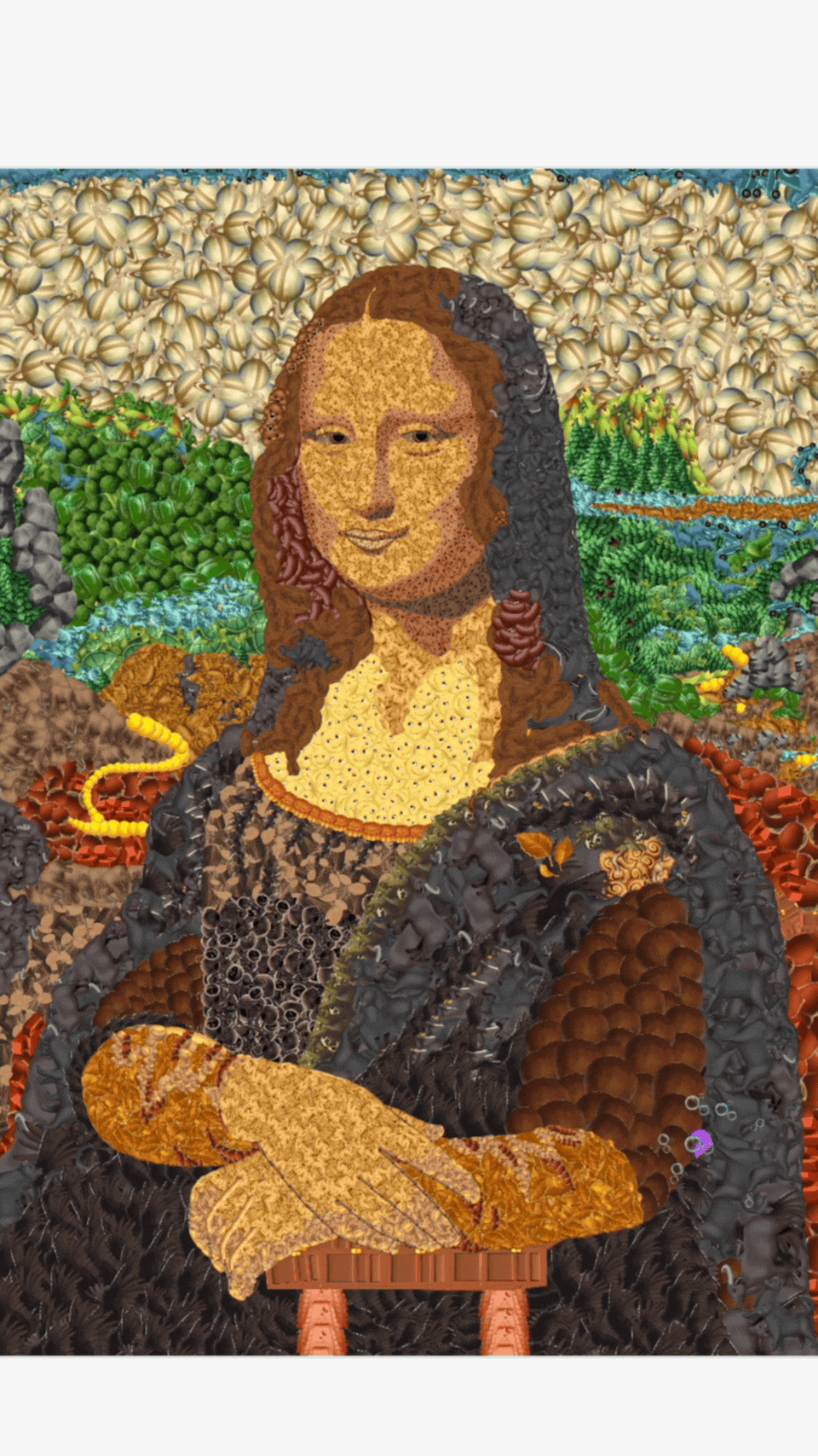 LE: I love things that feel familiar—a celebrity, a classic artwork, or, like, a box of Pop Tarts. I once went up to Action Bronson in a Miami hotel lobby and was like, “Hi, can I emoji you?” He said yes. (I made his beard out of hedgehogs and his sneakers out of sponges and worms.)